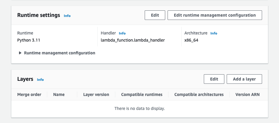 - Lambda Layer Version 64+: Python 3.9, 3.10, 3.11