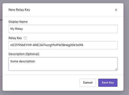 - Click New Relay Key to add the key and save it:
